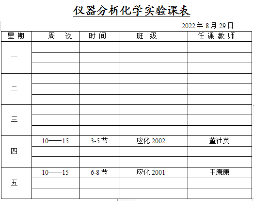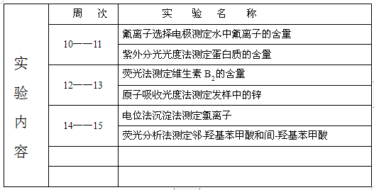 仪器分析化学实验课表