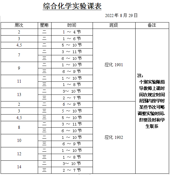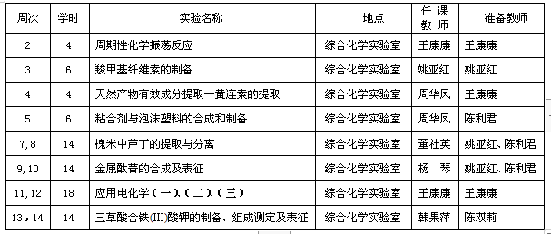 综合化学实验1课表