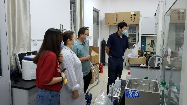 随后,付义乐结合学生返校开展实验工作情况,与草堂校区实验中心老师进行座谈,要求一定要时刻关注返校学生实验情况,在严格落实疫情防控常态化管理的前提下,尽可能为返校学生提供安全的学习生活条件和良好的实验环境,为打赢疫情防控阻击战贡献化工力量。
