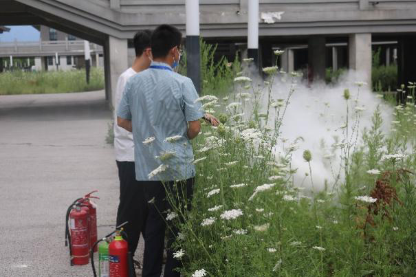 随后,保卫处周勇老师为大家开展了消防安全知识培训,详细讲解了实验室常见几种火情选用灭火器的原则、灭火器的使用以及正确的消防处理办法和注意细节。现场师生体验了三种不同类型灭火器的实际使用操作力。