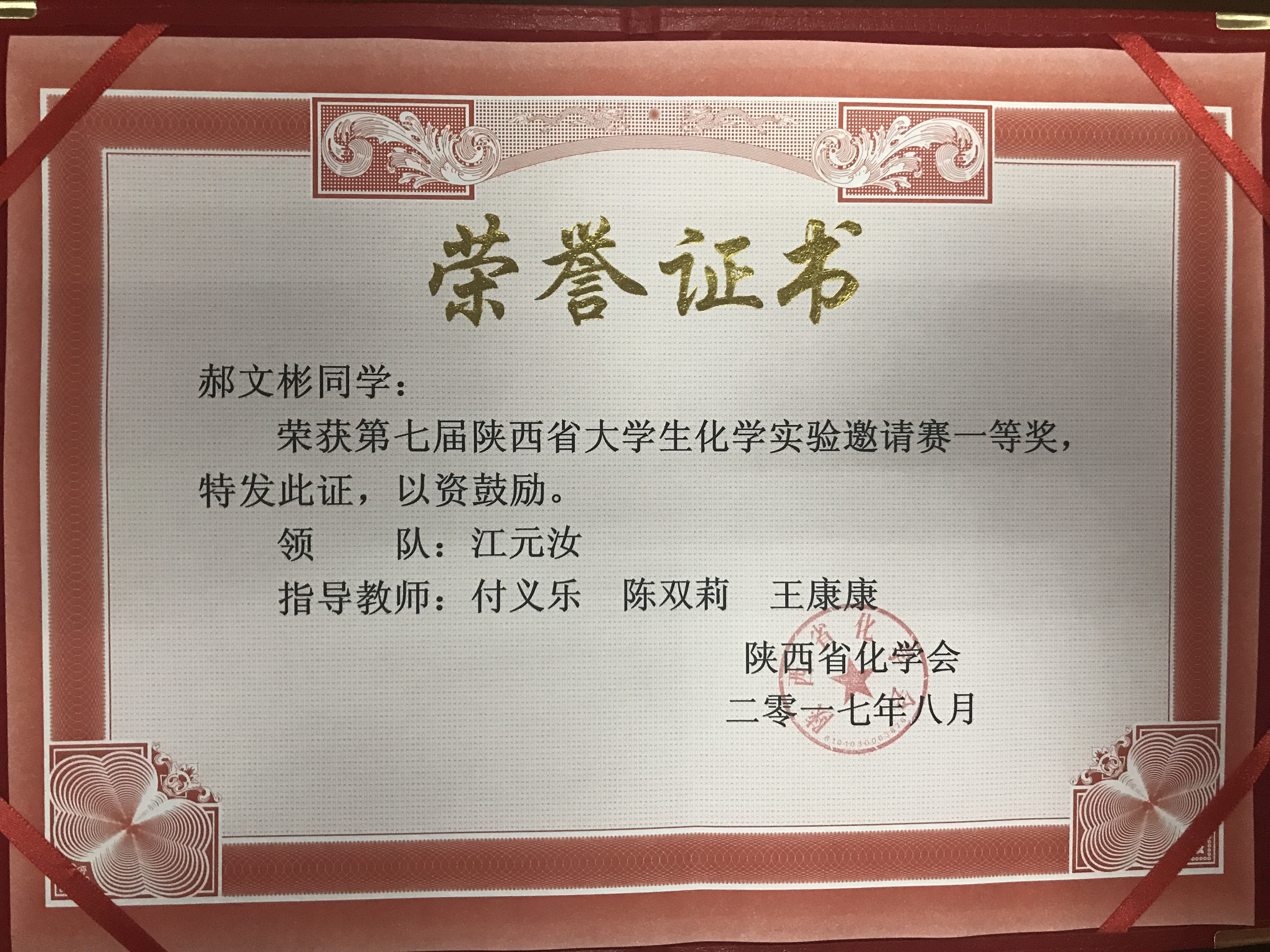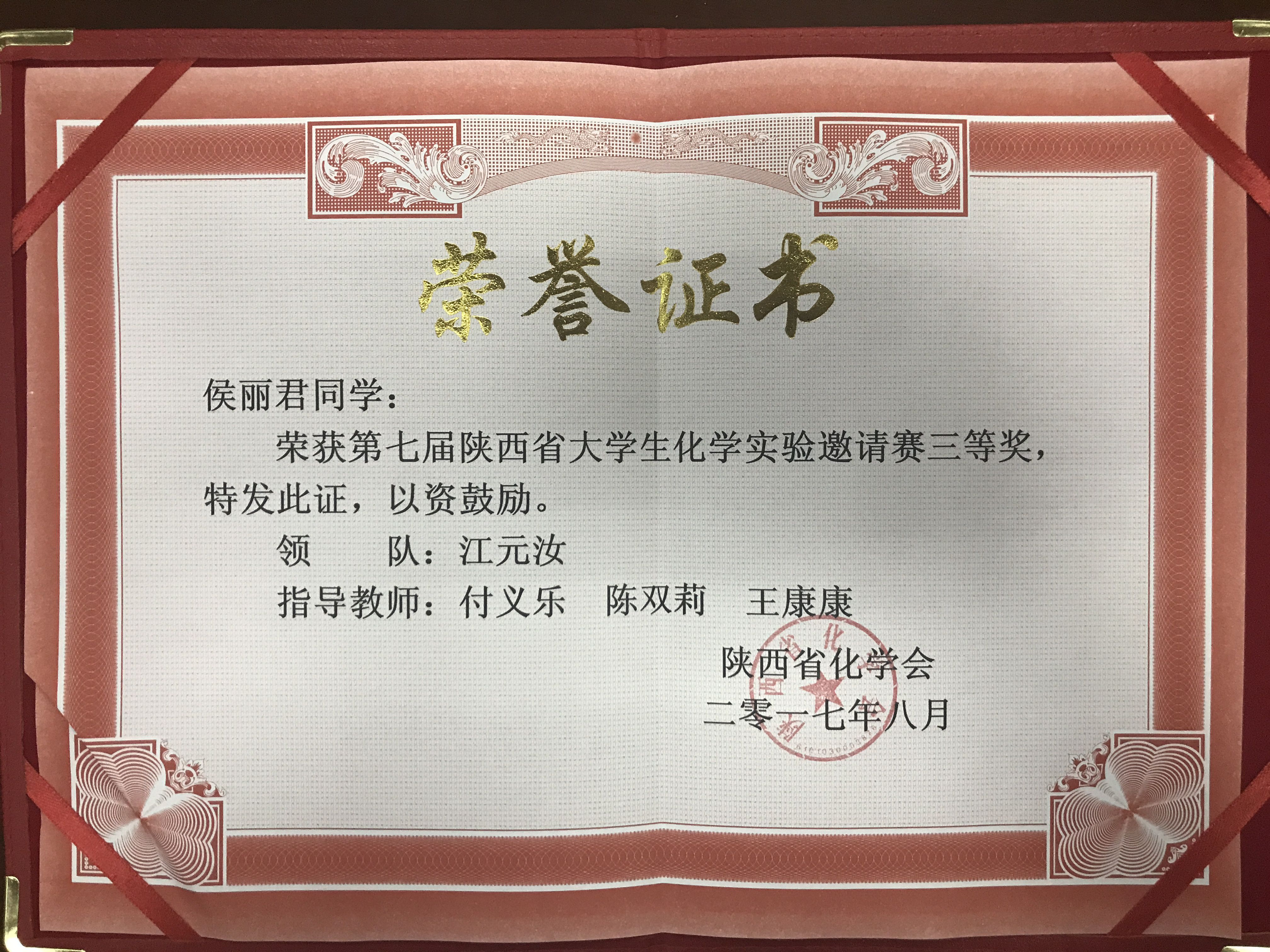 必赢线路检测3003学生在第七届陕西省大学生化学实验邀请赛中喜获佳绩