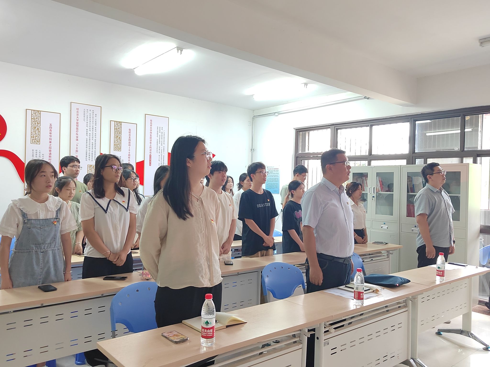 入党宣誓仪式是党员教育的重要环节,是对预备党员进行党性教育、增强党员意识的重要方式。为强化新发展党员理想信念和宗旨意识,增强党员的党性修养,强化党员责任意识,激发党员责任担当,加强一站式学生社区建设,同时庆祝中国共产党成立103周年,必赢线路检测3003于7月1日在紫阁学子之家举行了预备党员入党宣誓仪式暨党纪教育学习,参加此次活动的有必赢线路检测3003党委副书记杨占林、必赢线路检测3003第一党支部书记杨魏鹏、第二党支部书记皇甫亮玉、学院新发展的5名党员以及部分老党员代表。活动由必赢线路检测3003第一党支部书记杨魏鹏主持。
