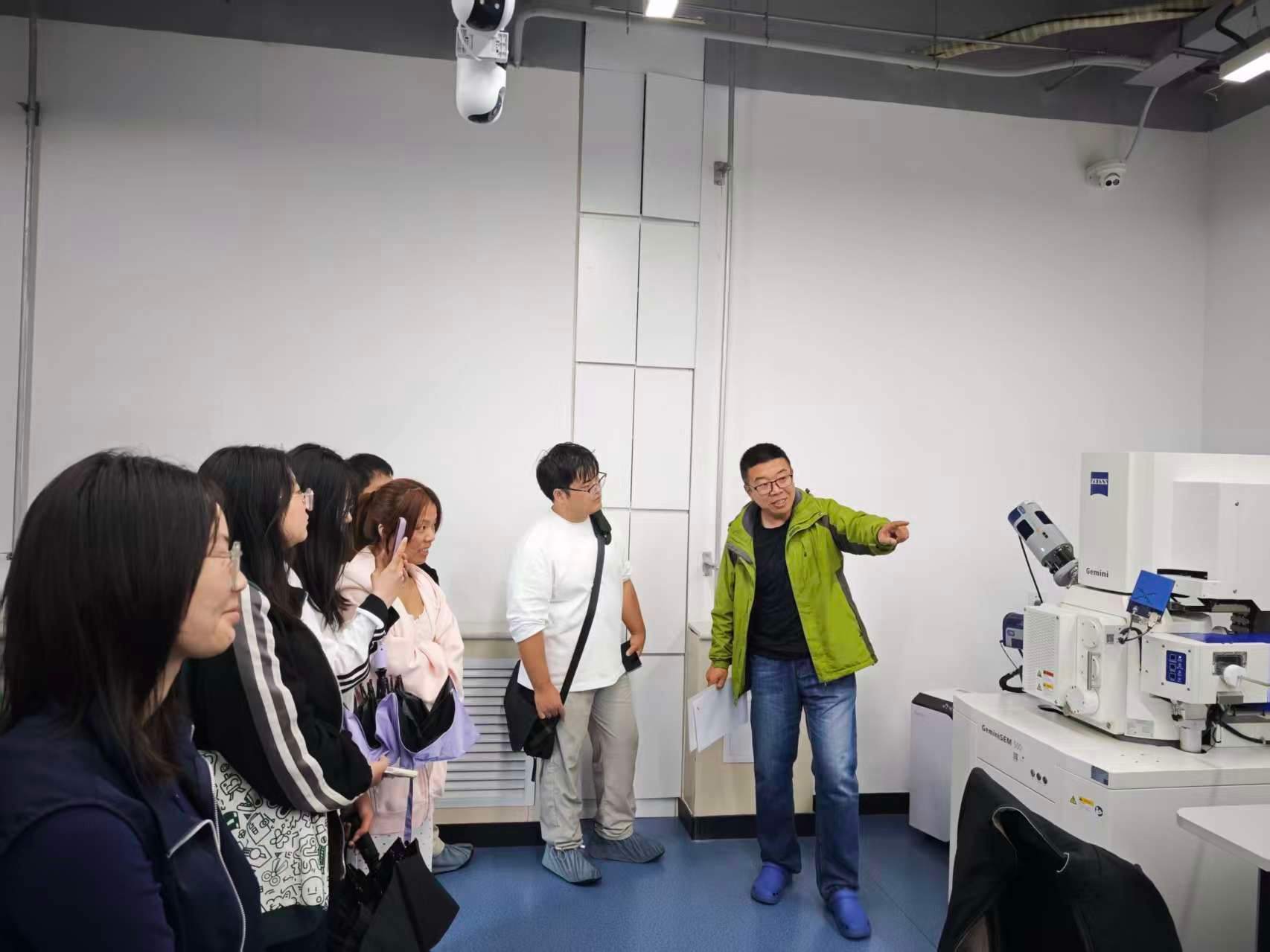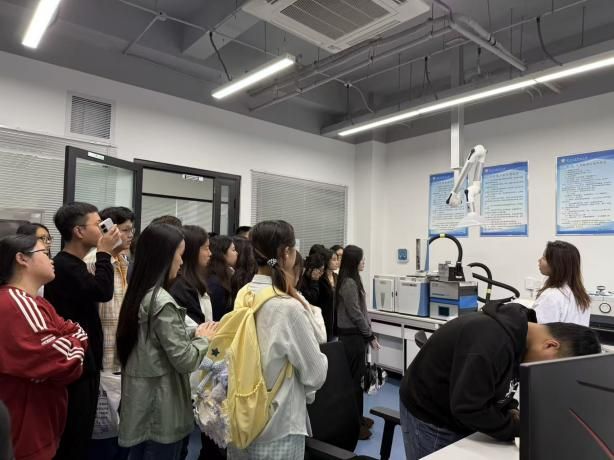 随后带领新生分组参观了显微分析室、成分结构分析室等多个核心功能实验室,测试中心专业技术老师深入浅出地讲解电子显微镜(SEM)、X射线衍射仪(XRD)、光谱分析仪等系列高精尖大型分析测试仪器的原理结构、功能操作和在具体实验过程中的应用案例。过程中同学们专注投入,围绕专业问题主动与老师交流,参观结束后纷纷表示对化工领域科研有了全新且深刻的理解。