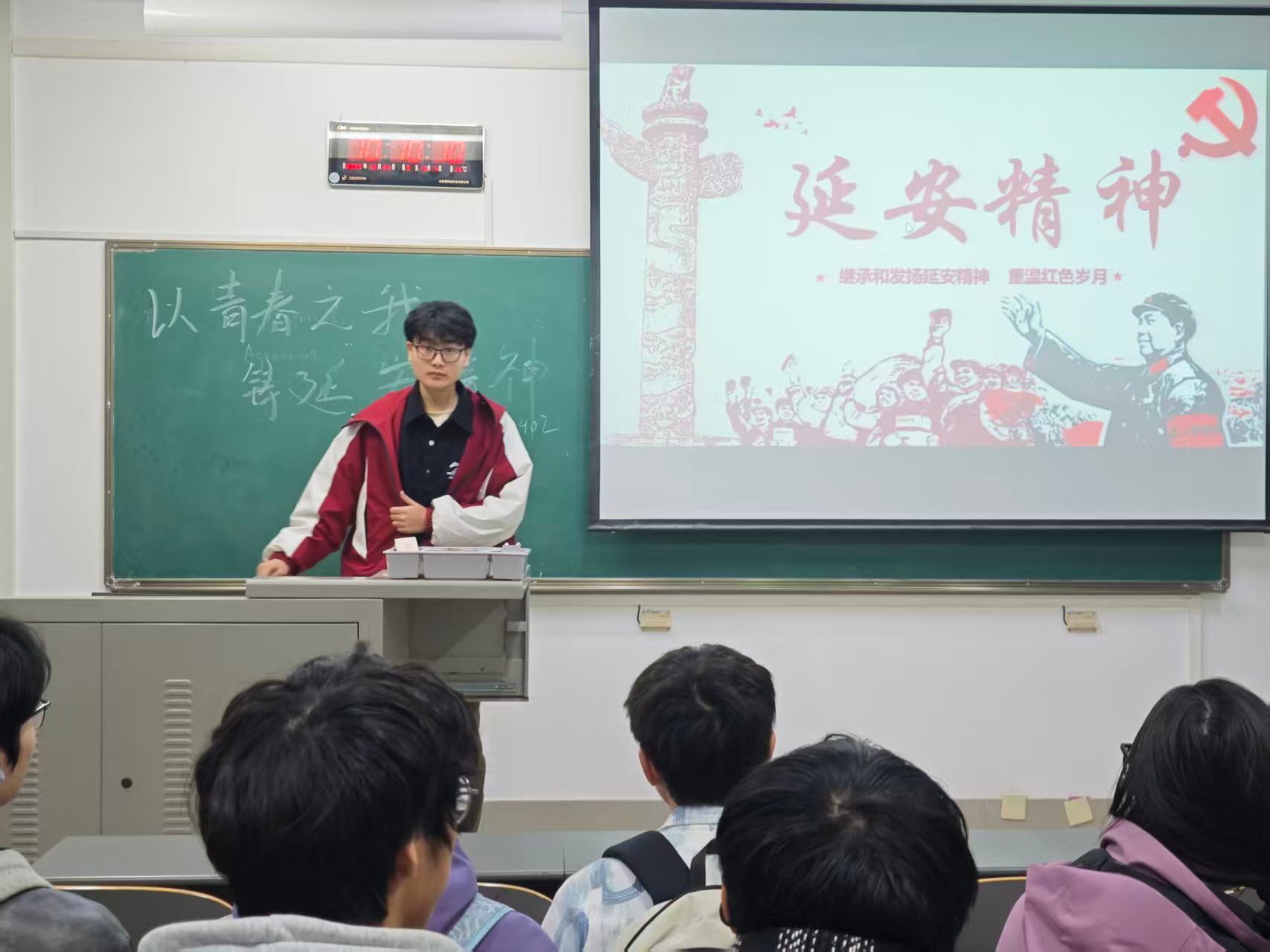 作为同样身处三秦大地的新时代学子,这次班会让我的肩上多了一份沉甸甸的责任感。我将把这份触动带回日常,在学业攻坚时,多一份“自力更生”的执着;在面对挑战时,多一份“艰苦奋斗”的坚韧。延安精神于我,是灯塔,更是行囊,它将指引并陪伴我走好未来的求学与人生之路。