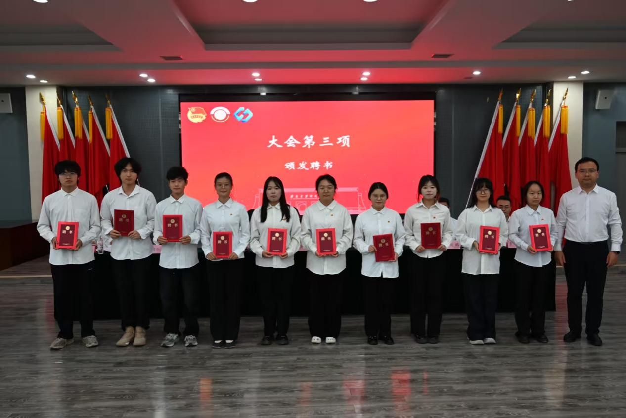 张卫华老师与黄河老师相继为上届团委、学生会、研究生会及新媒体中心的主要成员颁发聘书。