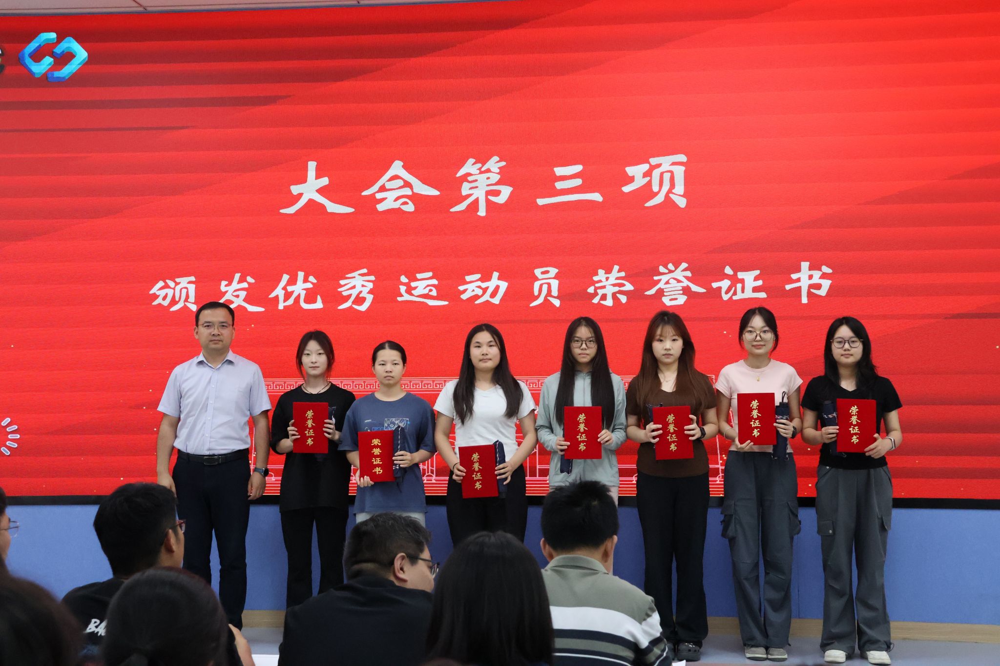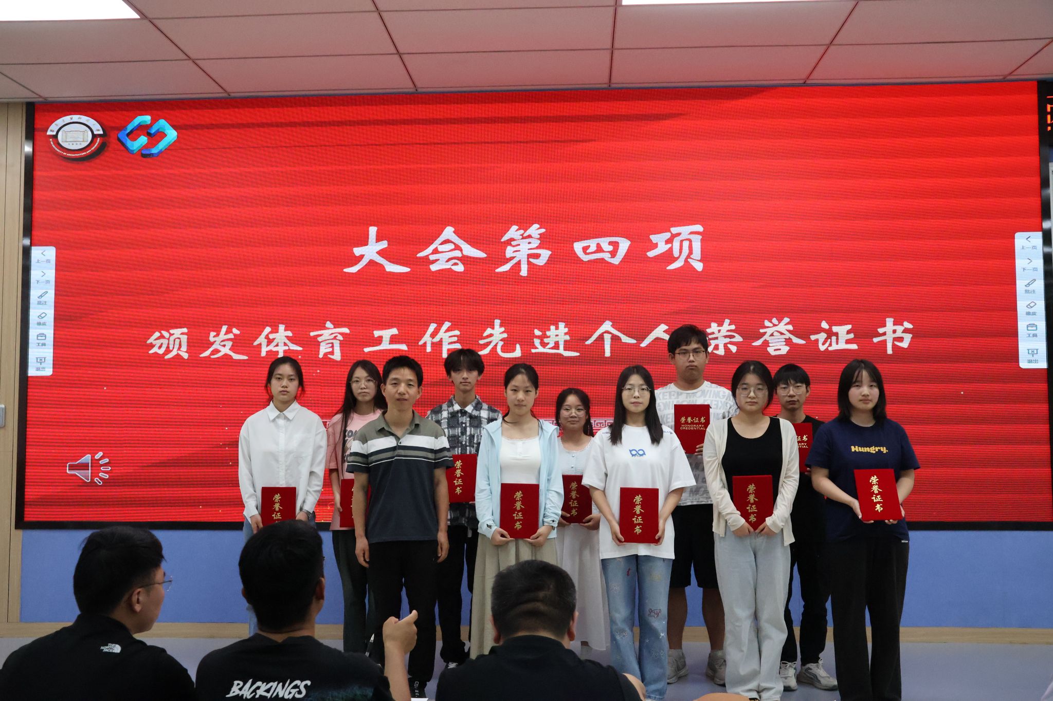 颁奖环节,黄河老师为优秀运动员颁发荣誉证书,杨博老师为体育工作先进个人颁发荣誉证书,赵志倩老师、杨魏鹏老师为优秀共青团干部、优秀共青团员颁发荣誉证书,现场掌声如潮。表彰既是对拼搏者的礼赞,亦是对全体学子赓续奋斗、再攀高峰期许。